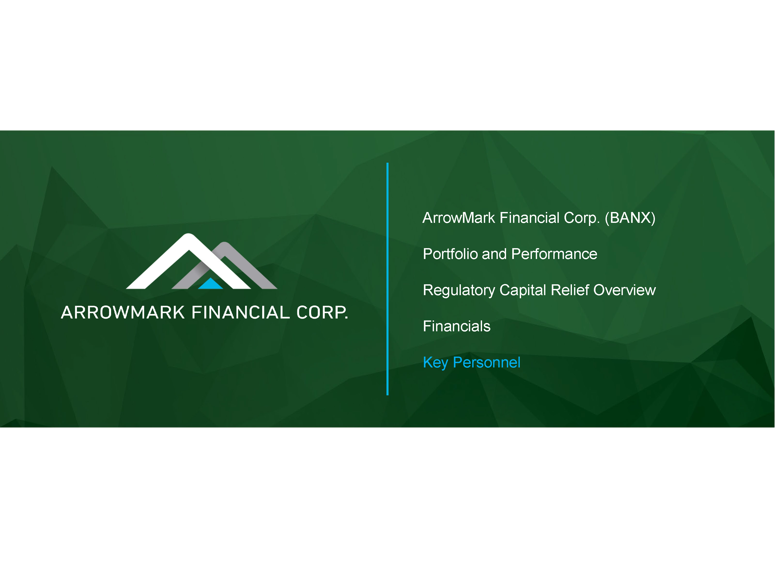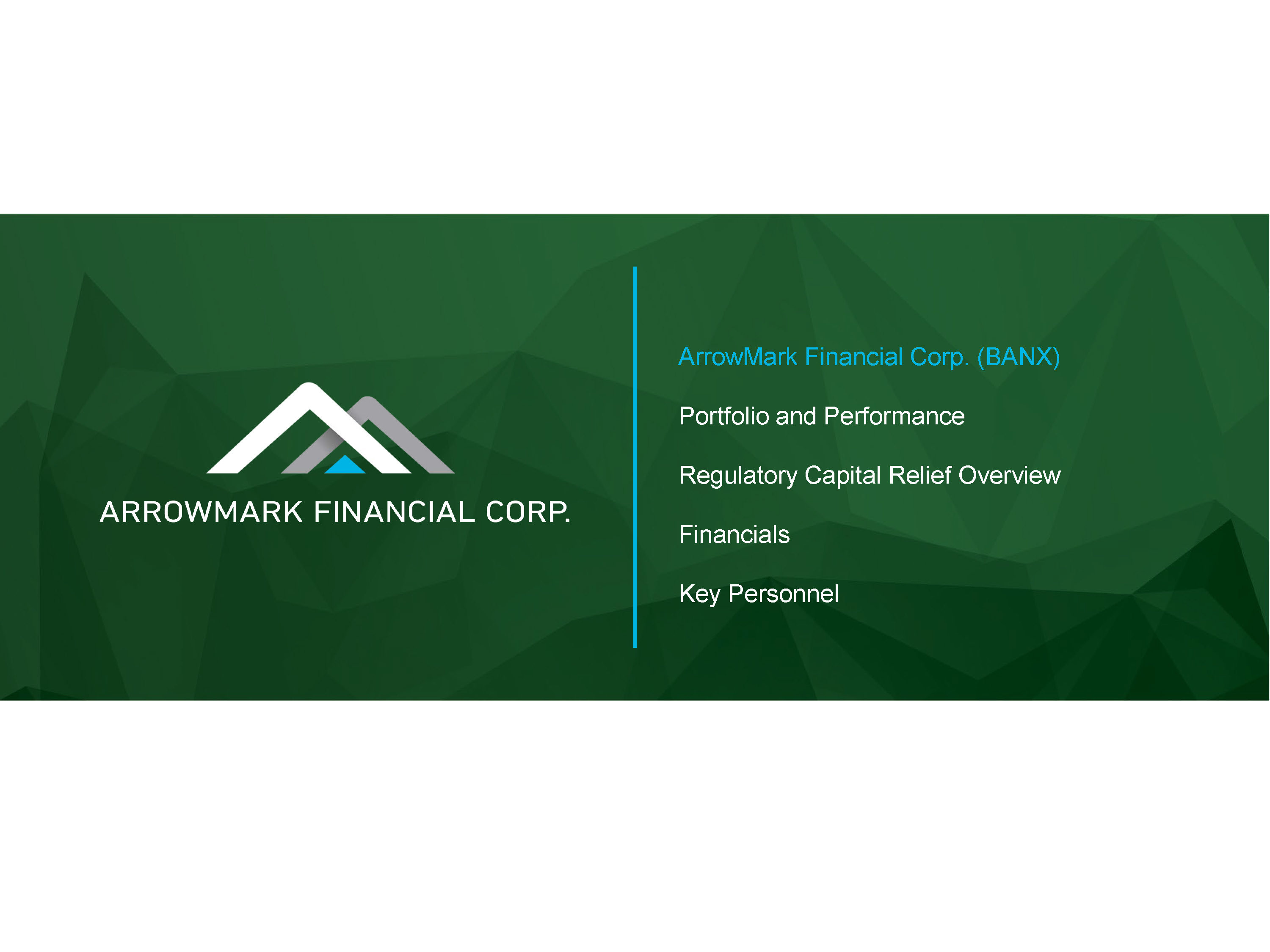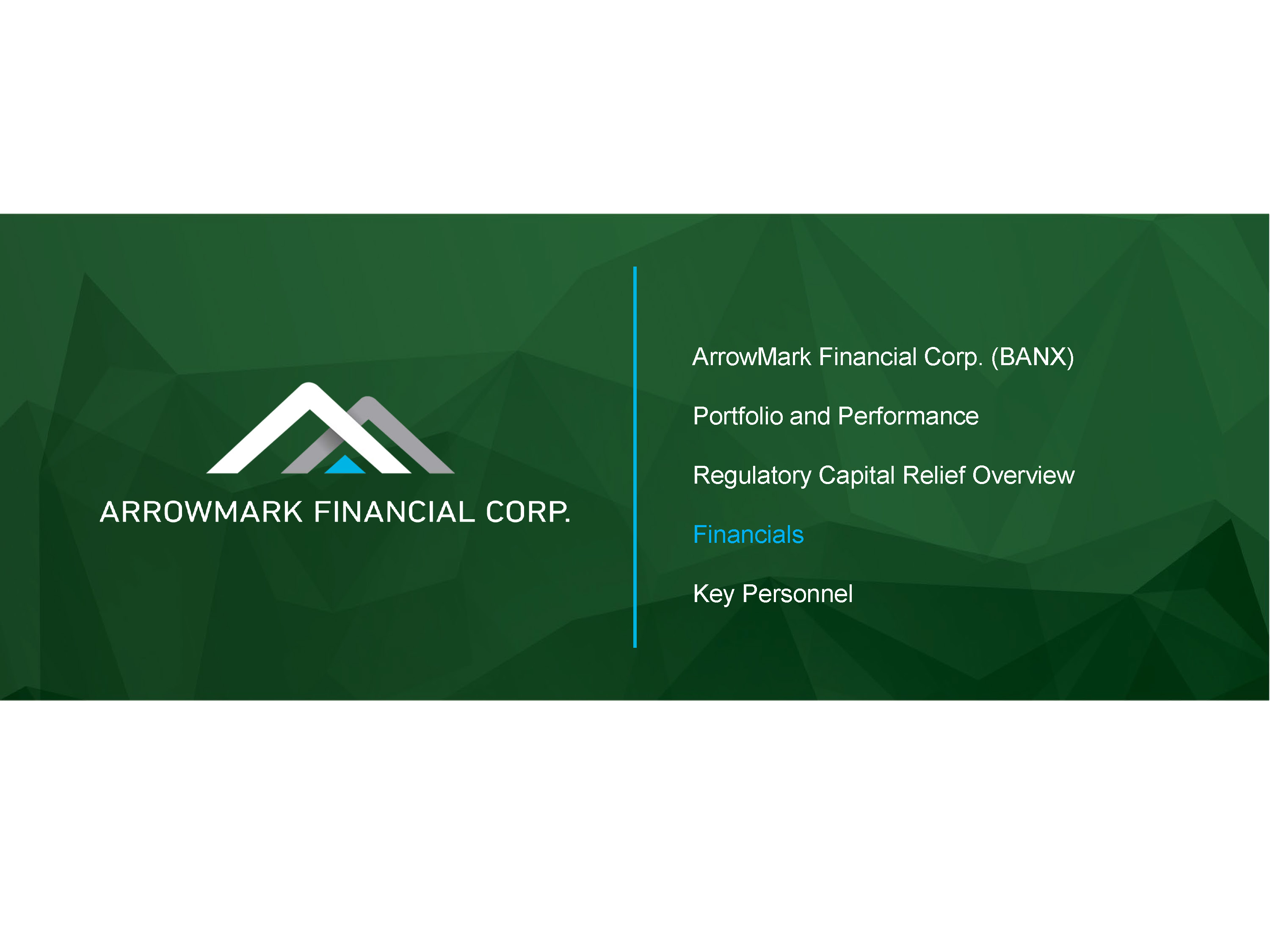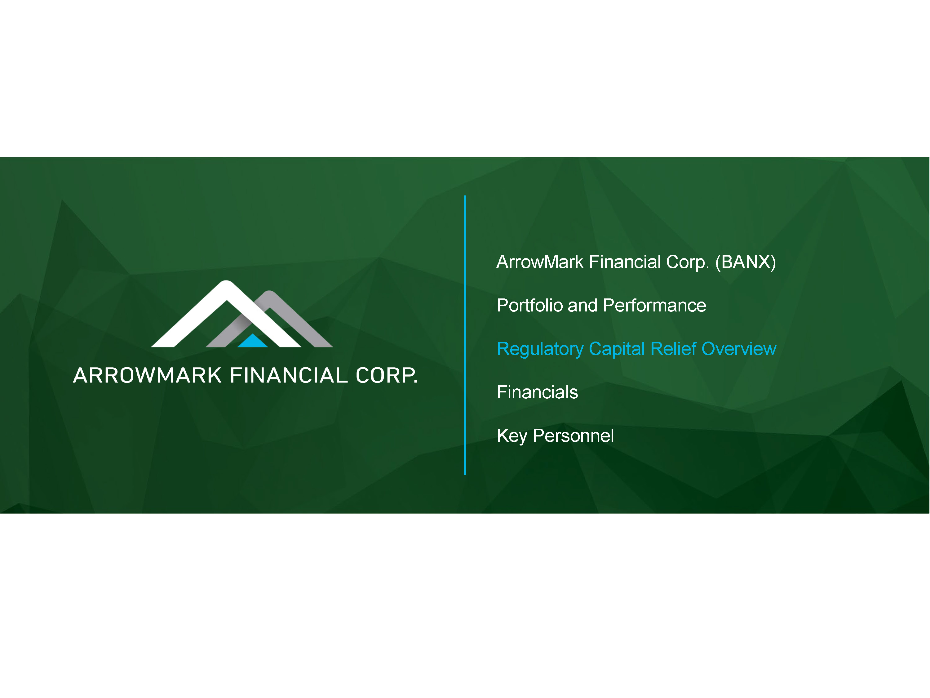 ArrowMark Financial Corp. (BANX) Portfolio and Performance Regulatory Capital Relief Overview Financials Key Personnel